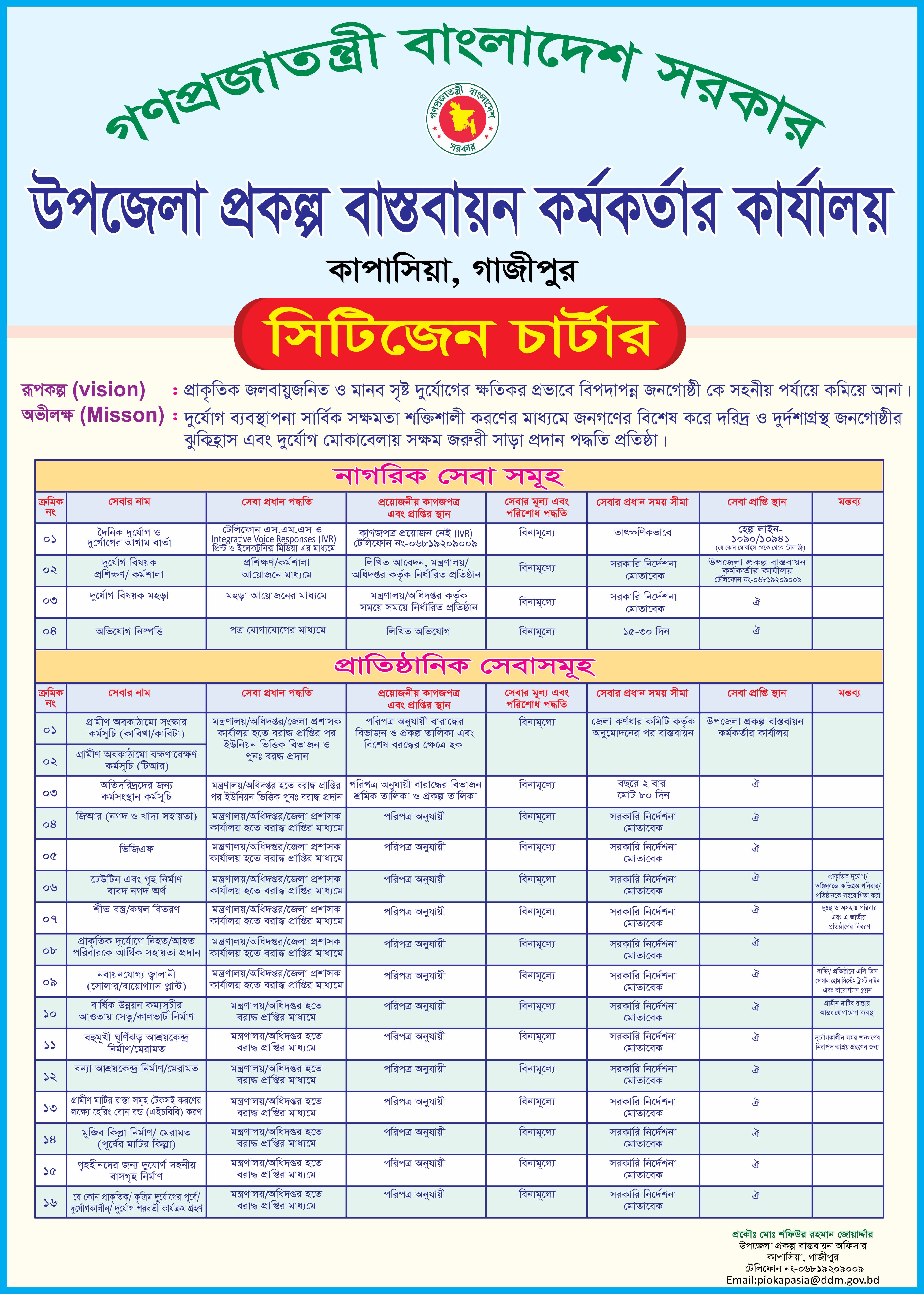 কাপাসিয়াউপজেলারপ্রকল্পবাস্তবায়নকর্মকর্তাকার্যালয়েরসিটিজেনচার্টারসমূহ:-